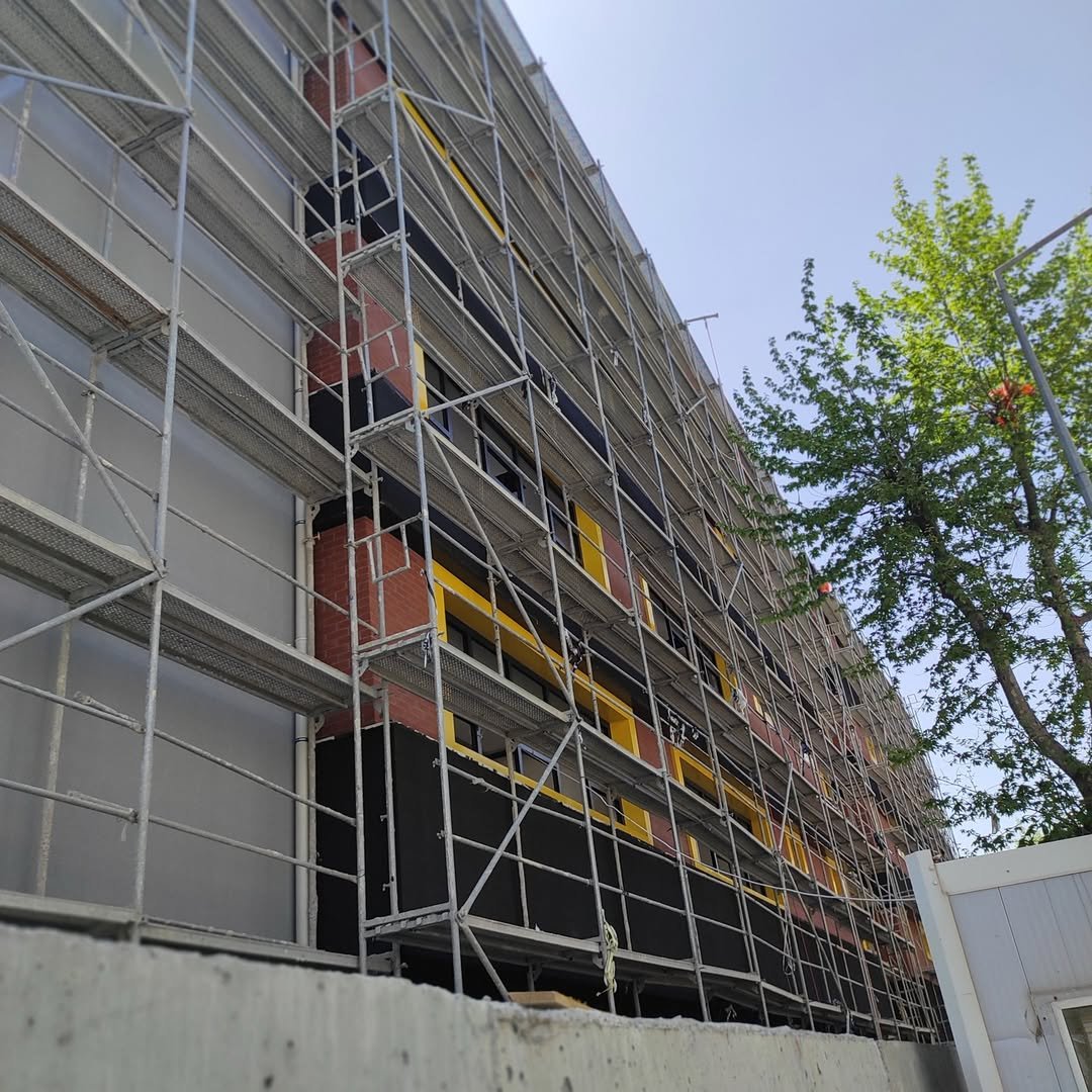 Alanında uzman ekibimiz tarafından iskele, tüm güvenlik ekipmanlarıyla birlikte kurulmaktadır.